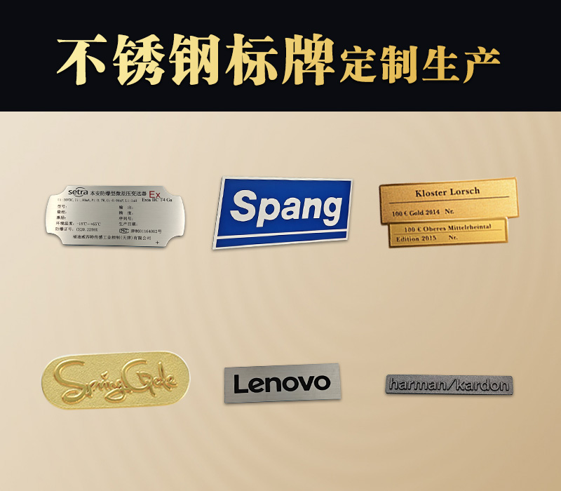 不銹鋼金屬標牌適用于工業制造與機械行業、電子與電器行業、汽車與交通運輸行業、醫療與制藥行業、建筑與裝飾行業、軍工與安防行業、奢侈品與禮品行業。其核心優勢在于適應惡劣環境、信息持久清晰、兼具功能性與裝飾性,因此在對標識耐用性、精度或美觀度有高要求的行業中均能發揮重要作用。