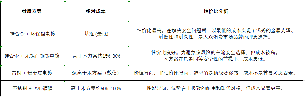 免責聲明: 本方案完全基于您所提出的“鎳材質經(jīng)過環(huán)保驗證,無過敏風險”這一核心前提。在實際應用中,建議務必向終端品牌方清晰傳達并提供相應的環(huán)保認證文件,以確保信息透明和商業(yè)合規(guī)。