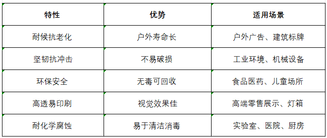 總而言之,PET材質標牌是一種性能均衡、應用全面的高端塑料標牌選擇。如果您需要一款兼顧耐用性、美觀度和環保性的標牌,尤其是在戶外、工業環境或有安全衛生要求的場所,PET是一個非常可靠的選擇。在具體項目中選擇時,可以結合預算和具體性能要求,將其與亞克力、PVC等材料進行對比考量。